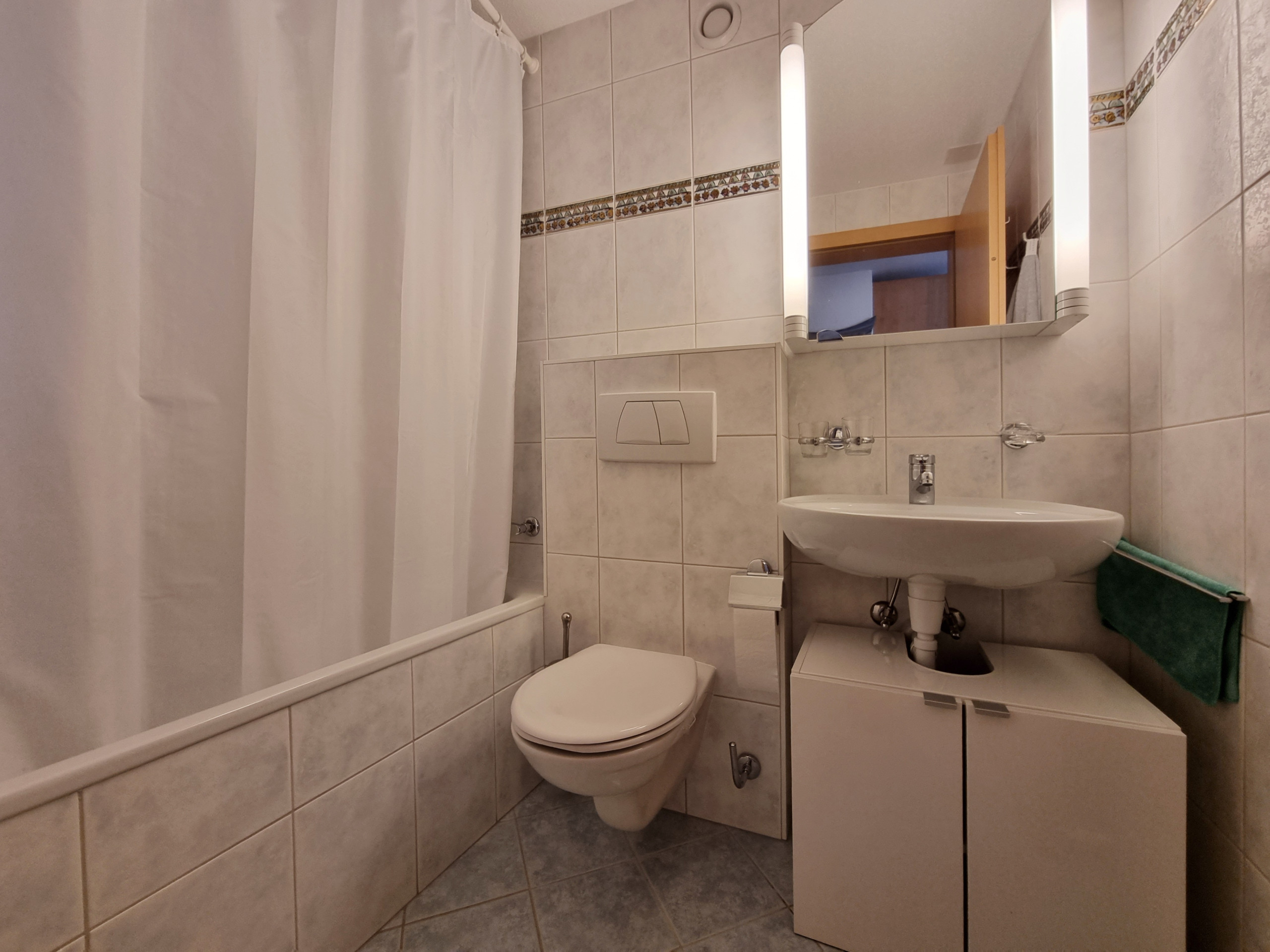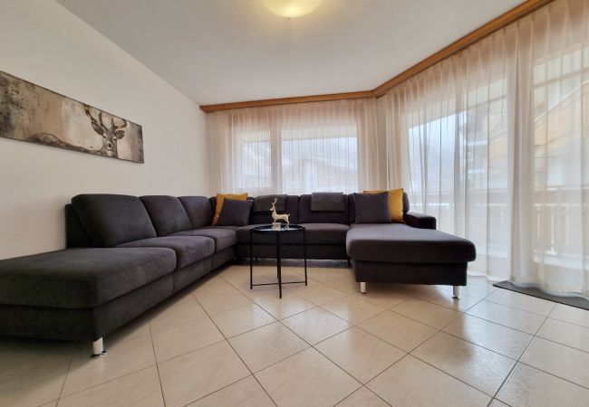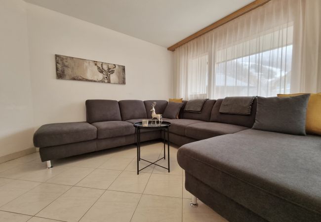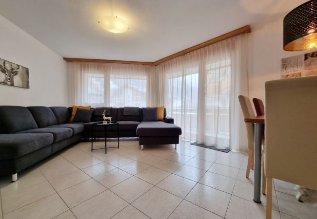 Modern 2-bedroom apartment in the house Dominic A. There are 2 bedrooms, one with two single beds and one with a double bed, and a bathroom with a bathtub. The big living and dining area with a open kitchen is the perfect place to relax. The sleeping couch in the living room can accomodate an extra 1 to 2 people. Furthermore there is a balcony with a small sitting area. Ski storage room and free WIFI are available.