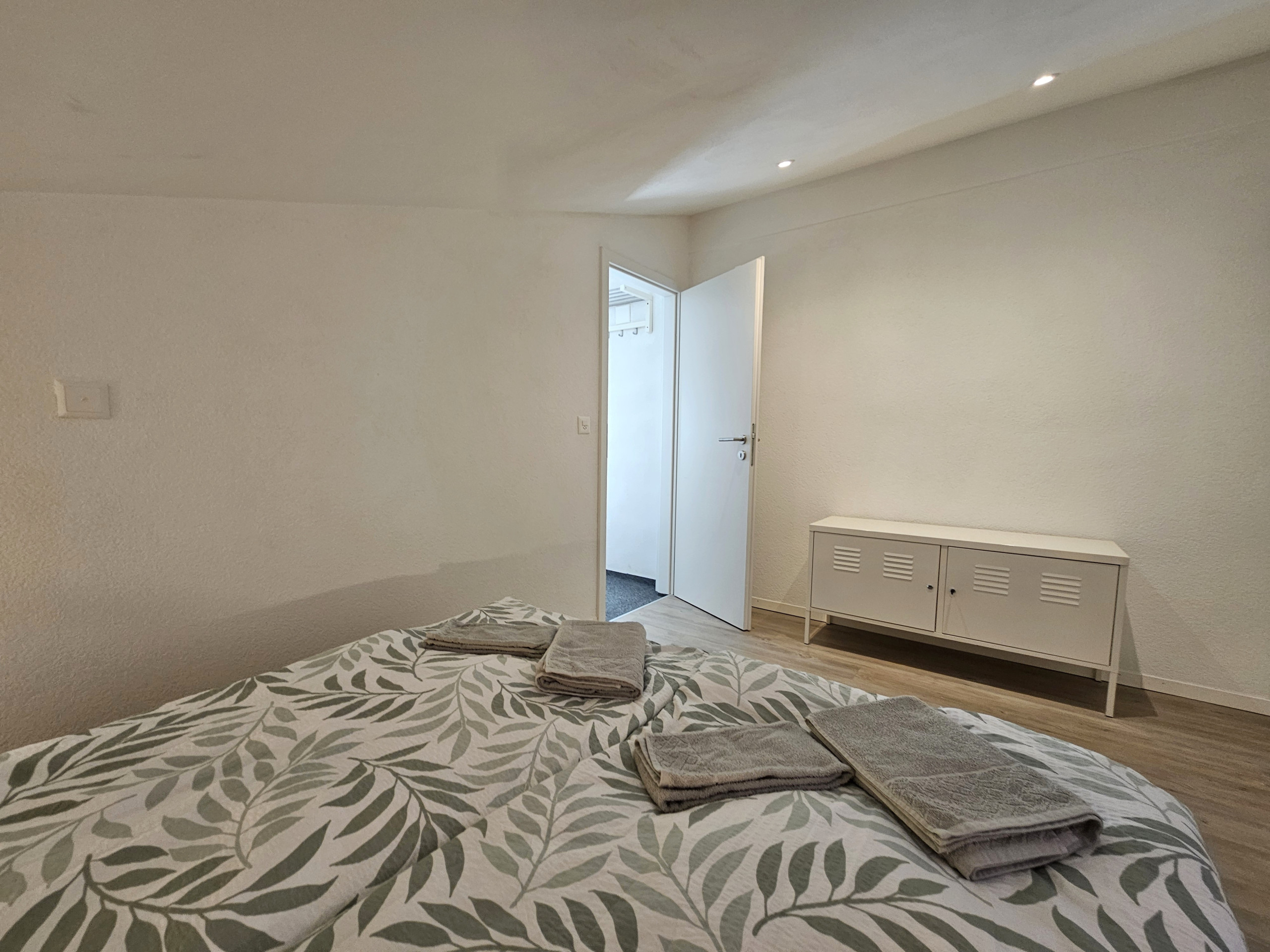 L'appartement lumineux de 3 pièces se trouve au 3ème étage de la maison Cresta et peut accueillir jusqu'à cinq personnes. Il dispose d'une chambre avec deux lits simples ainsi qu'une autre chambre avec trois lits simples. La salle de bain est équipée d'une baignoire et de toilettes.
