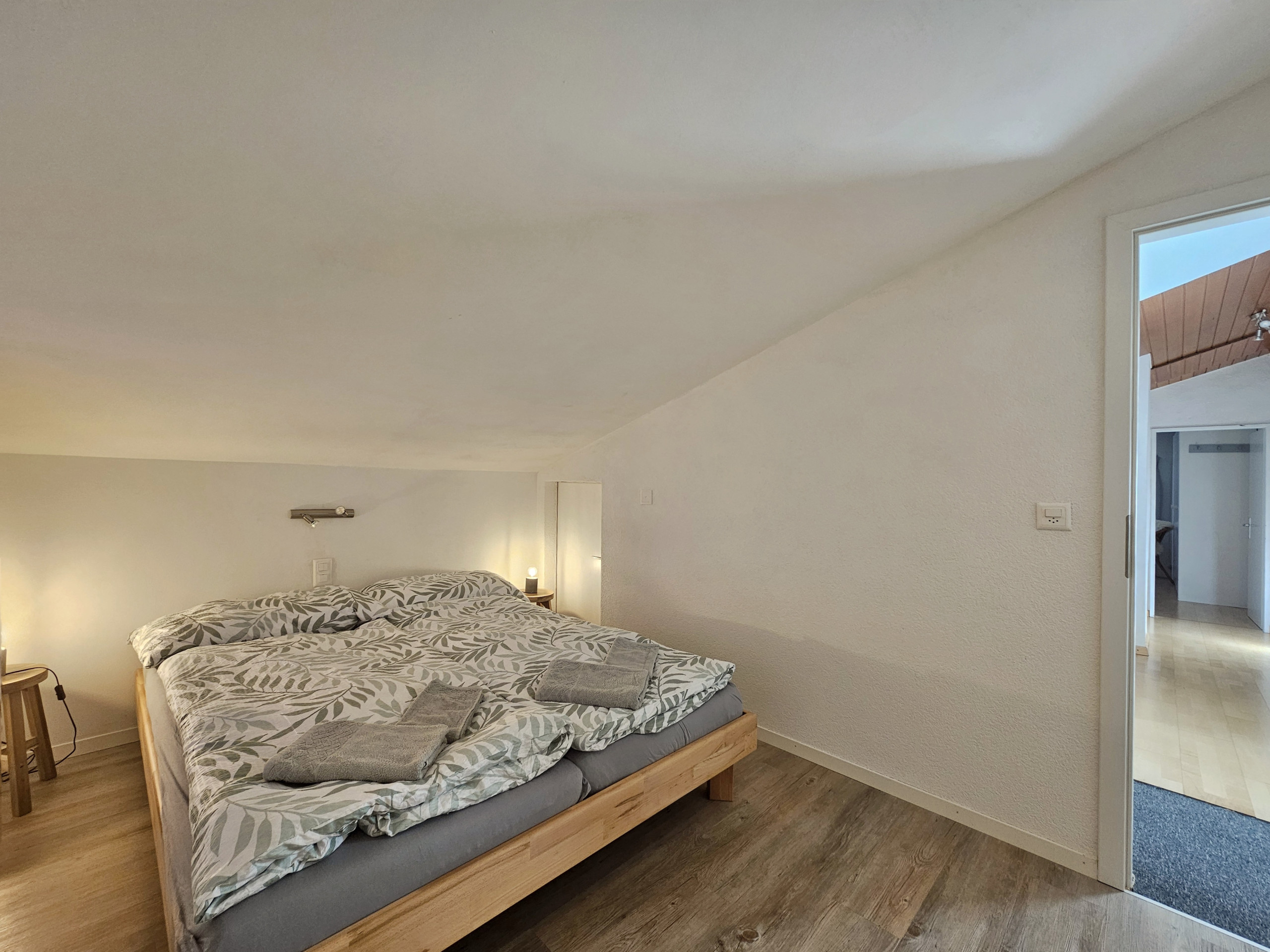 L'appartement spacieux au troisième étage se compose de 2 chambres à coucher et 2 salles de bains. Il y a une chambre avec un lit double et une chambre avec 3 lits (1 lit simple et un lit superposé). Il y a deux salles de bains, l'une avec une baignoire et l'autre avec une douche. De plus, il y a une cuisine moderne avec un lave-vaisselle et un coin repas. Depuis le balcon orienté au sud, vous pouvez profiter d'une vue magnifique sur les montagnes.